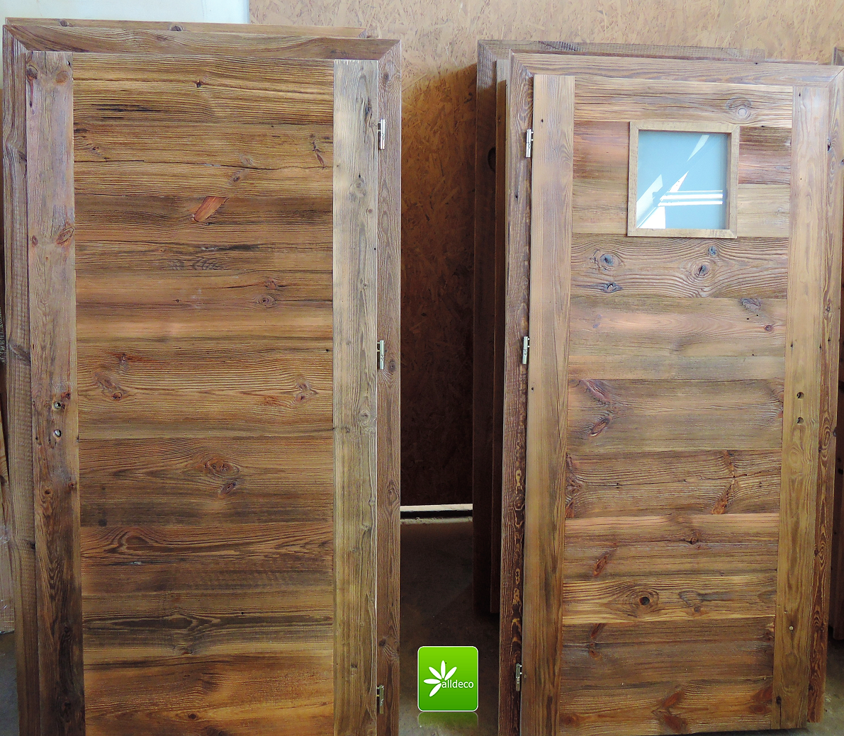 W naszym atelier robimy drzwi z prawdziwego, starego drewna pochodzącego z rozbiórek budynków z terenu Polski. Stare drewno, jego unikatowa struktura oraz kolor sprawiają, że każde drzwi nabierają niepowtarzalnego wyglądu.