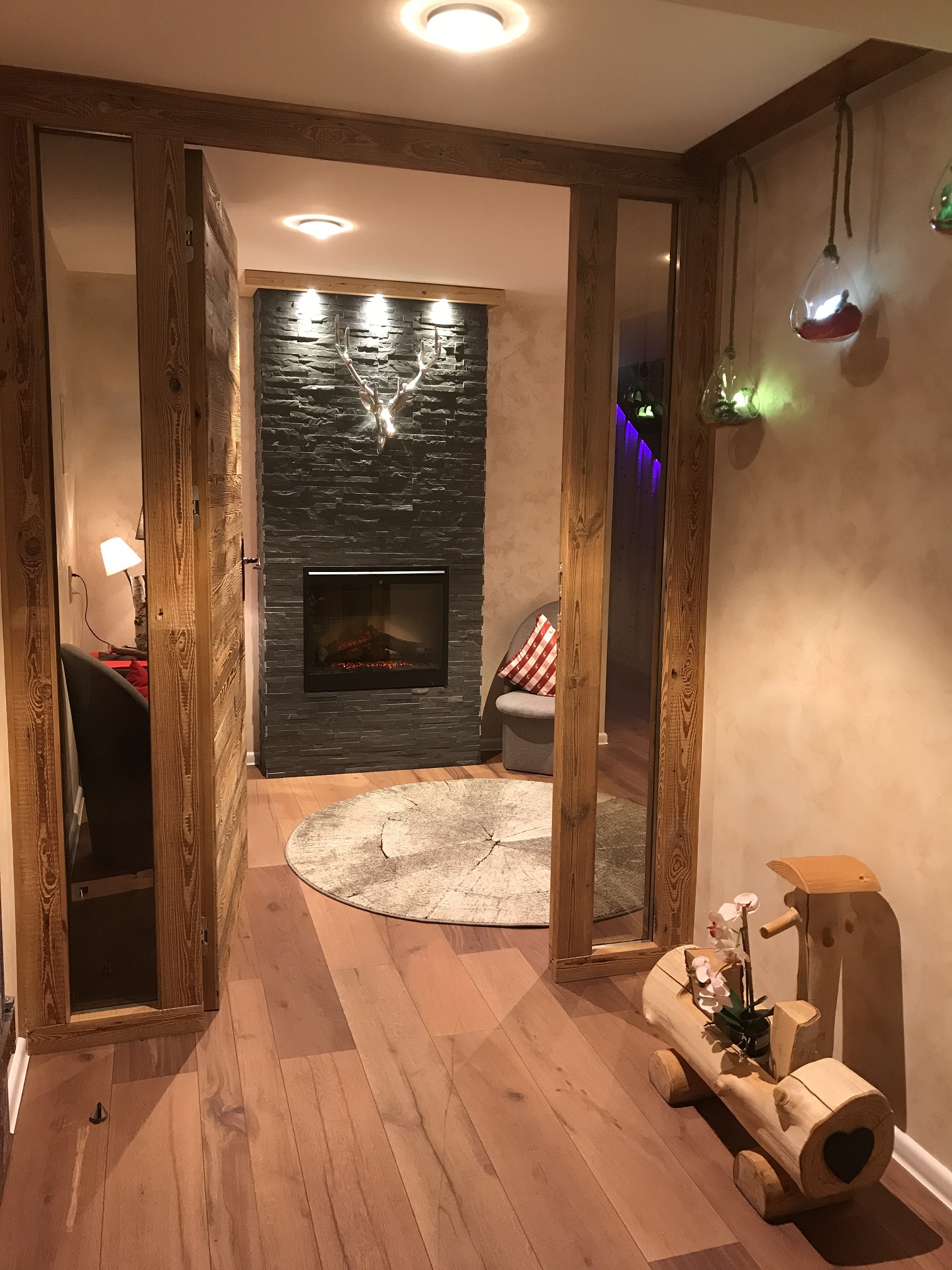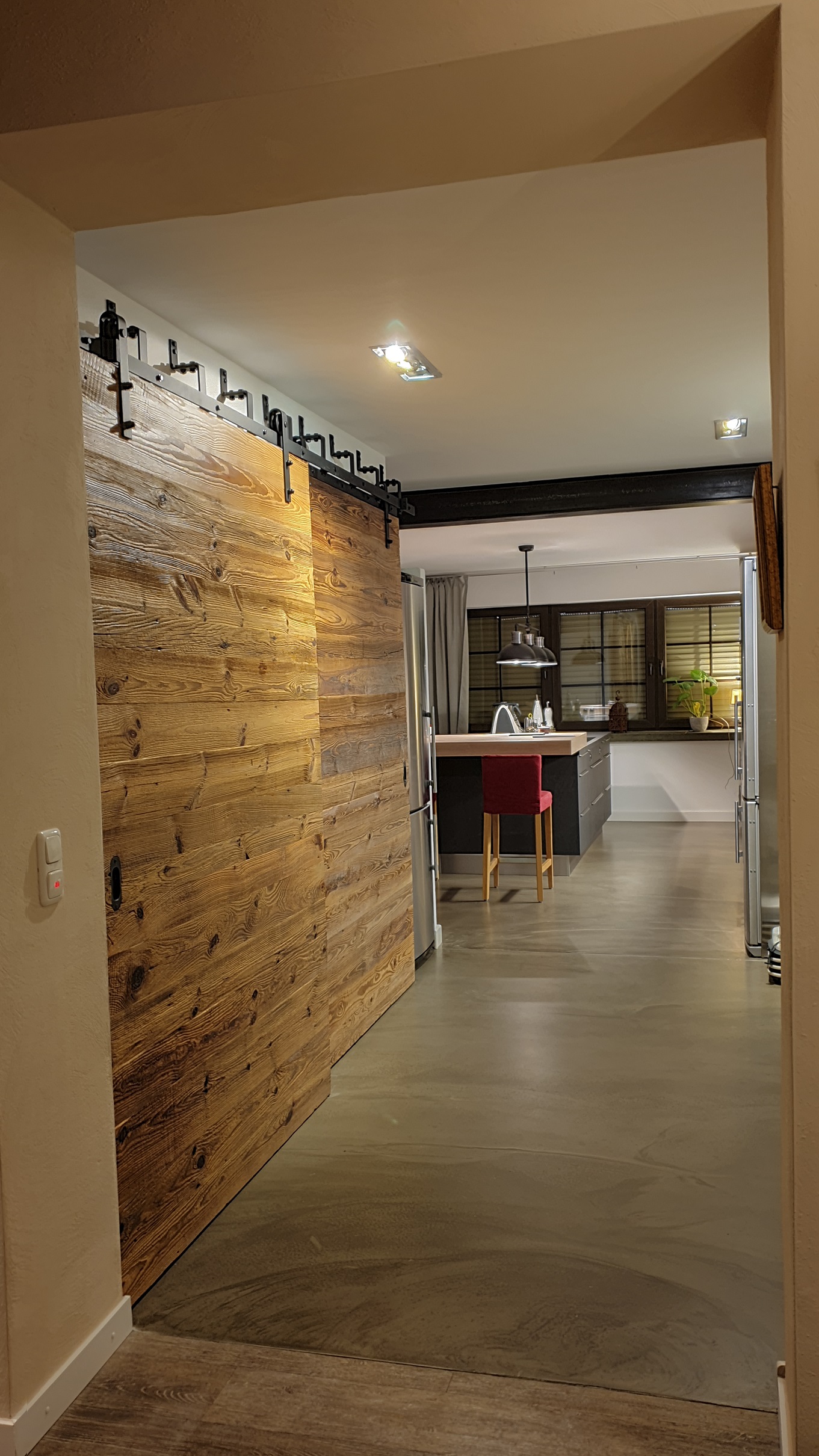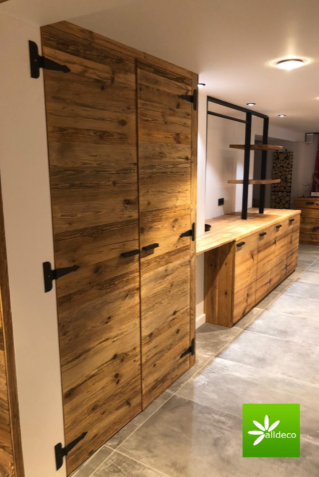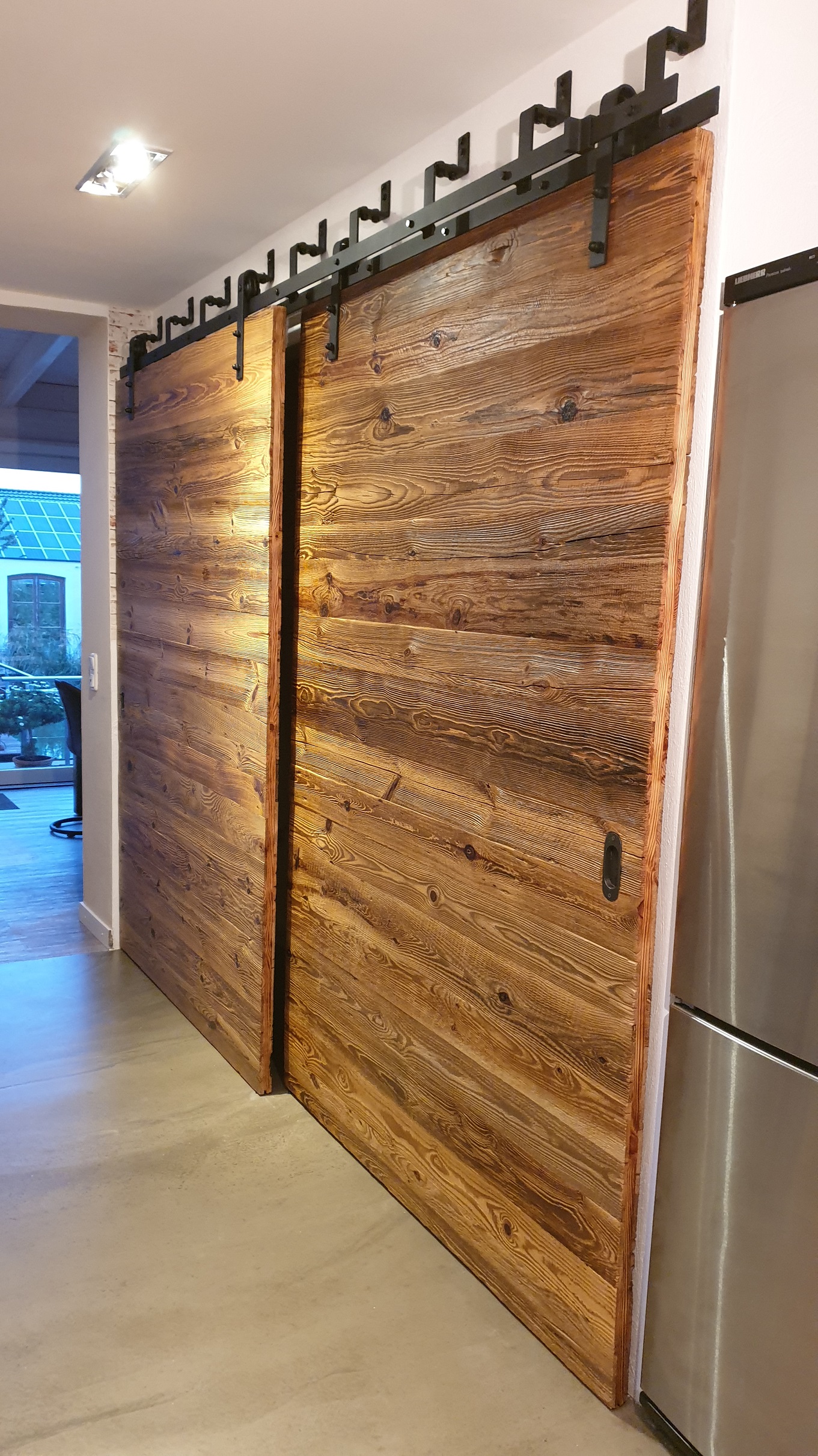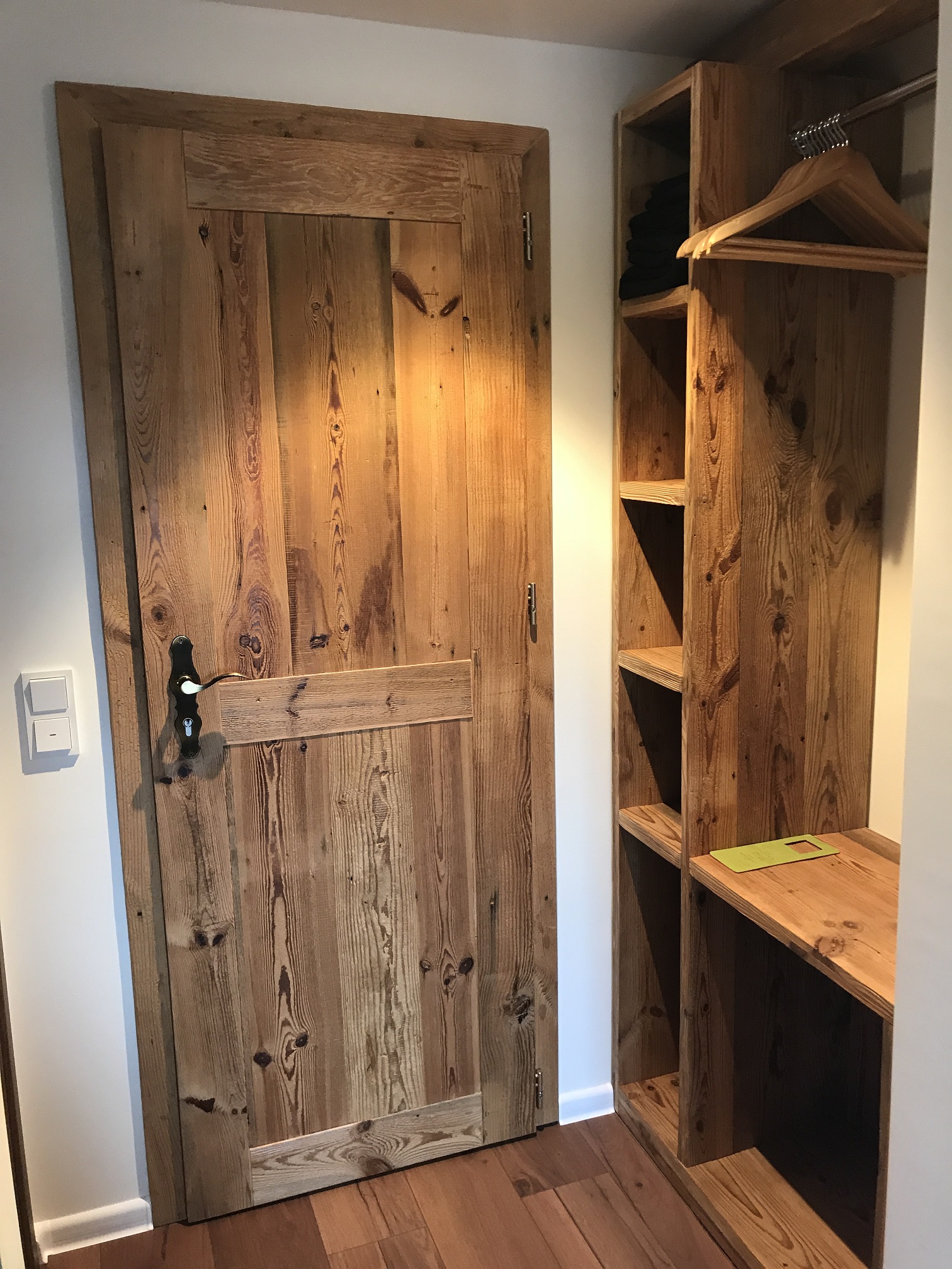 Drzwi wykonujemy metodą rzemieślniczą. Konstrukcja oparta jest na ramiaku, z warstwą wierzchnią ze starego drewna oraz izolacją foniczno-termiczną.