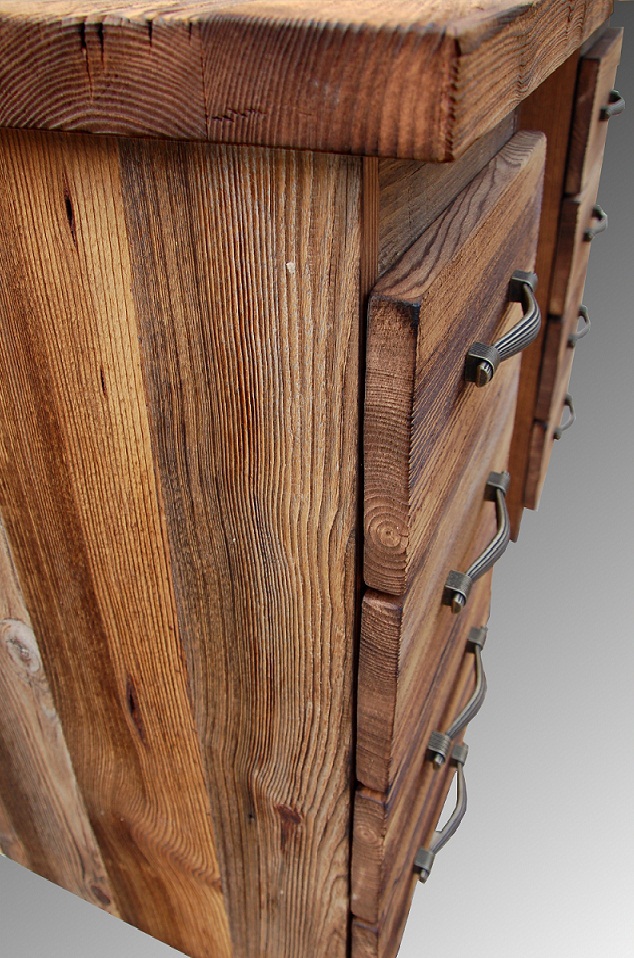 Tworzymy komody, konsole i inne meble z klejonego litego drewna, z frontami wykonanymi z trójwarstwowej klejonki ze starego drewna. Oferujemy możliwość indywidualnego dopasowania wnętrza komody do własnych potrzeb.