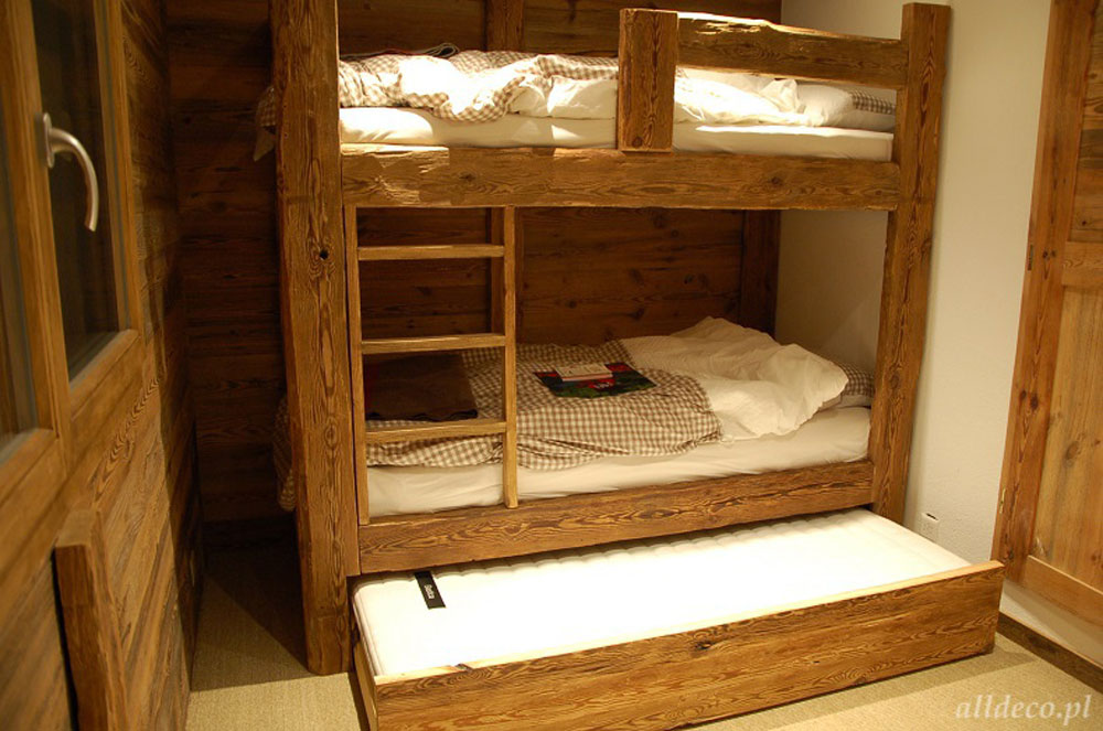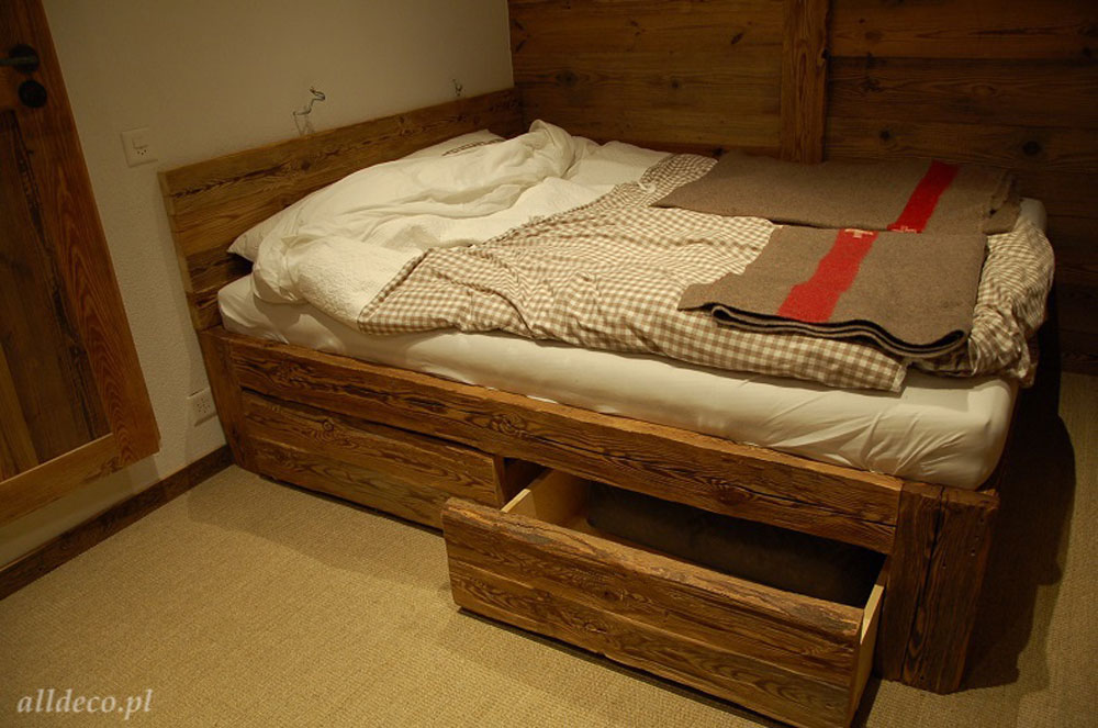 Każde łóżko ze starego drewna — pojedyncze, podwójne czy piętrowe — wykonywane jest na indywidualne zamówienie i stanowi niebanalną ozdobę sypialni.