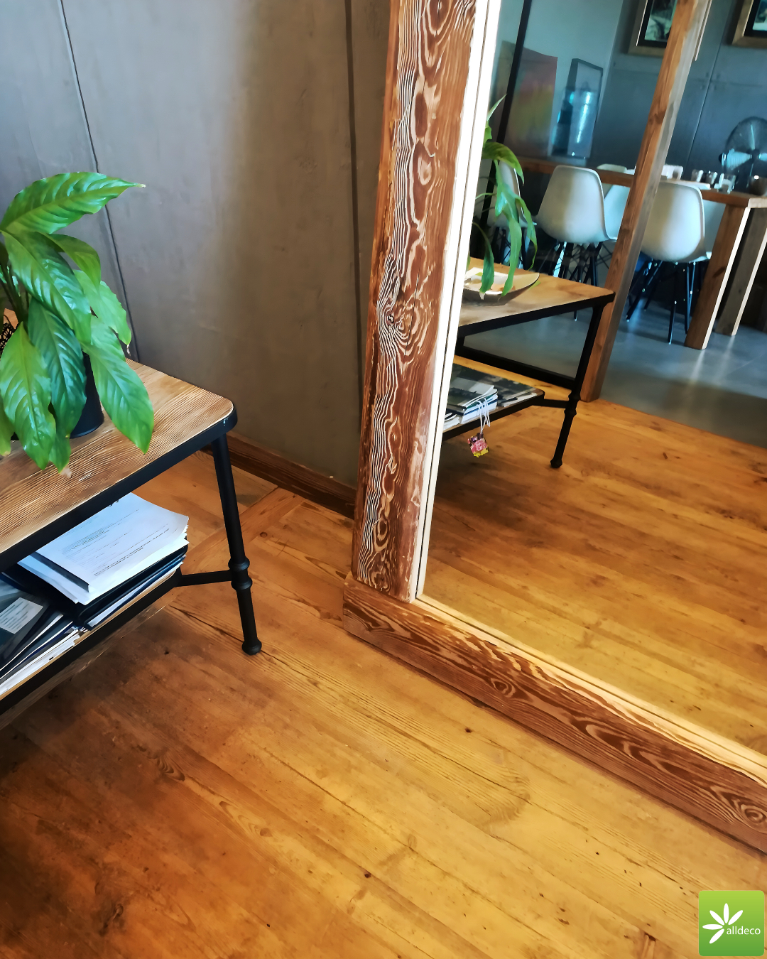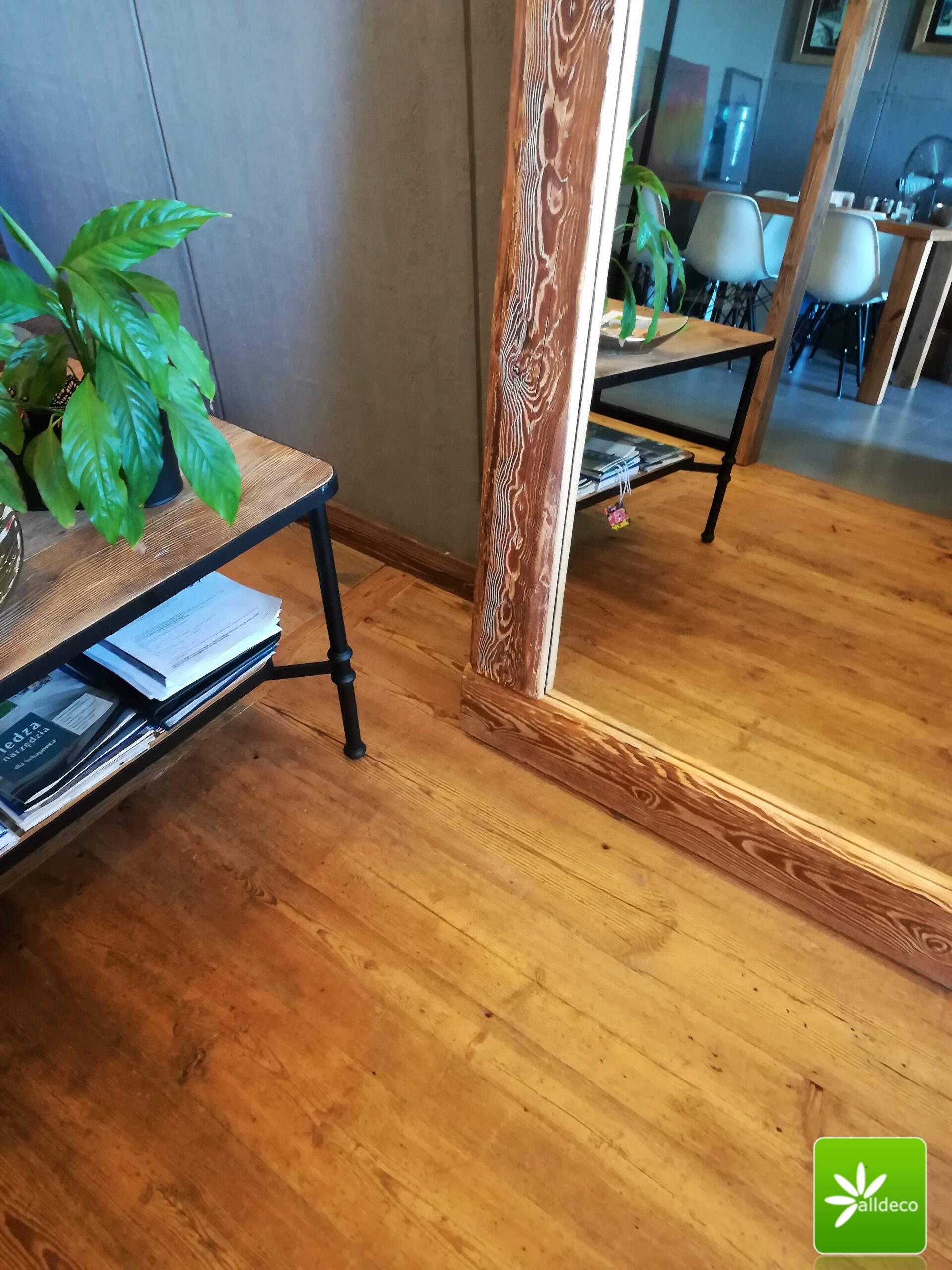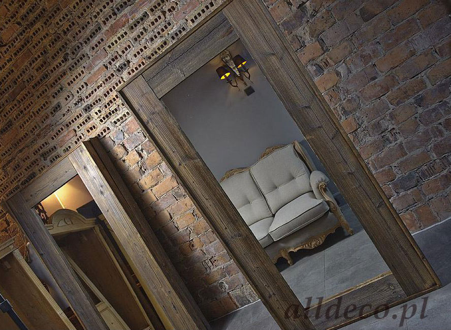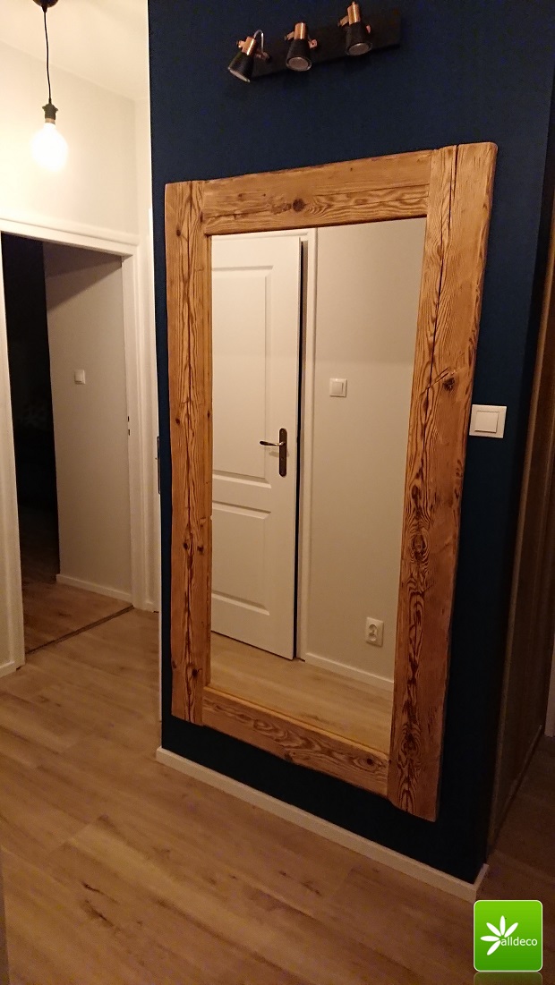 Większe ramy na lustra czy obrazy wykonujemy z drewna ręcznie ciosanego. Zaciosania, pęknięcia sprawiają, że tego typu ramy prezentują się imponująco. Lustro oprawione w tak nietypową ramę będzie stanowiło niebanalną ozdobę holu, salonu czy łazienki.