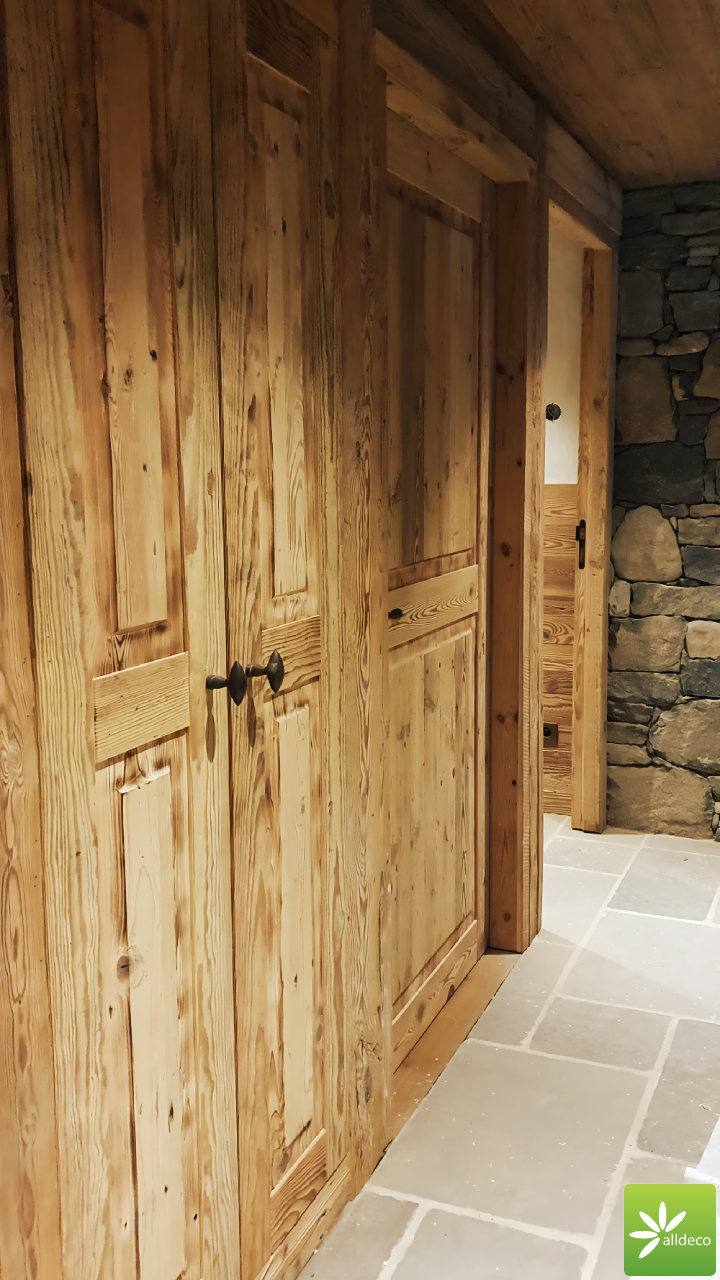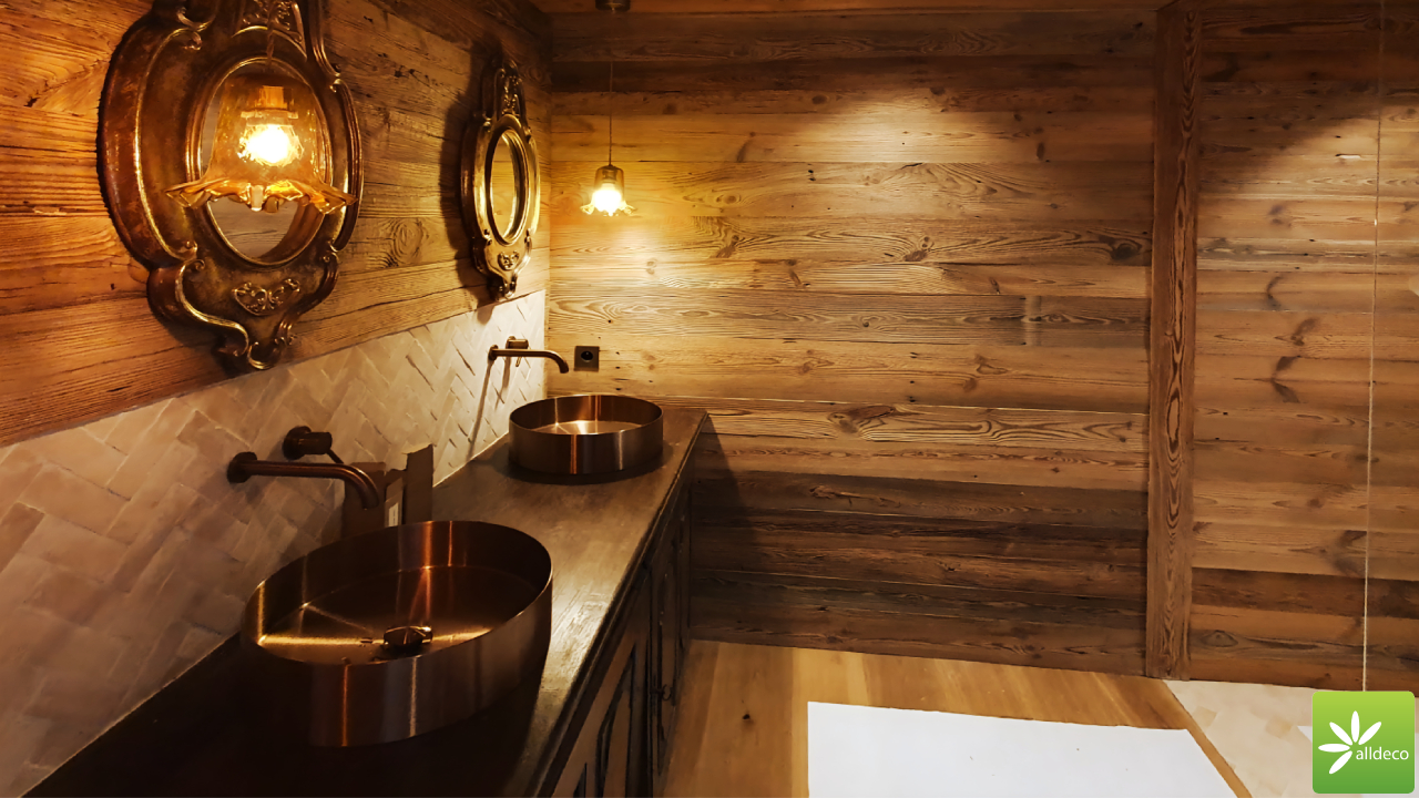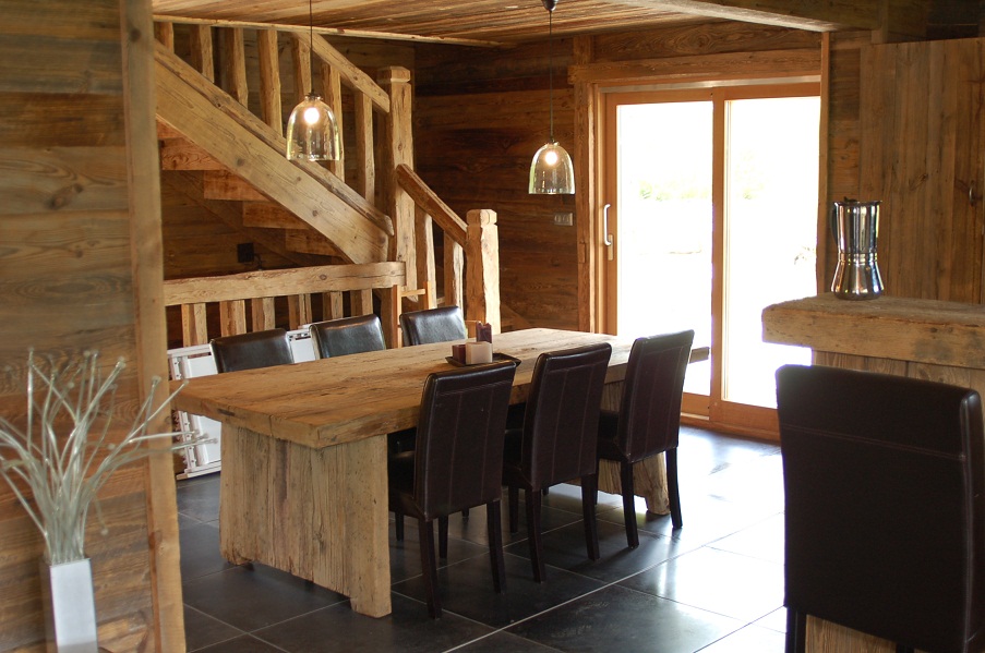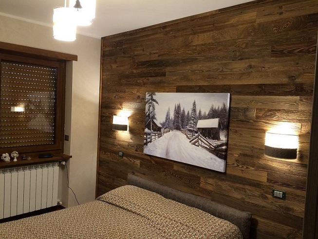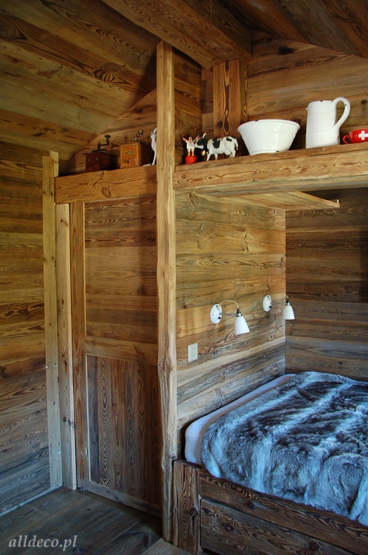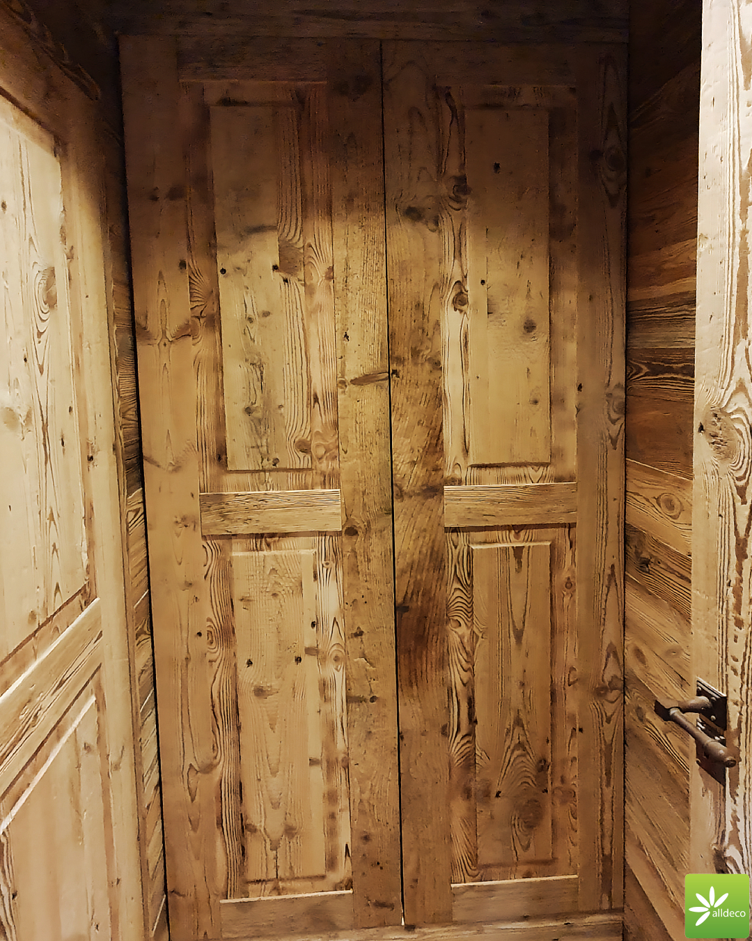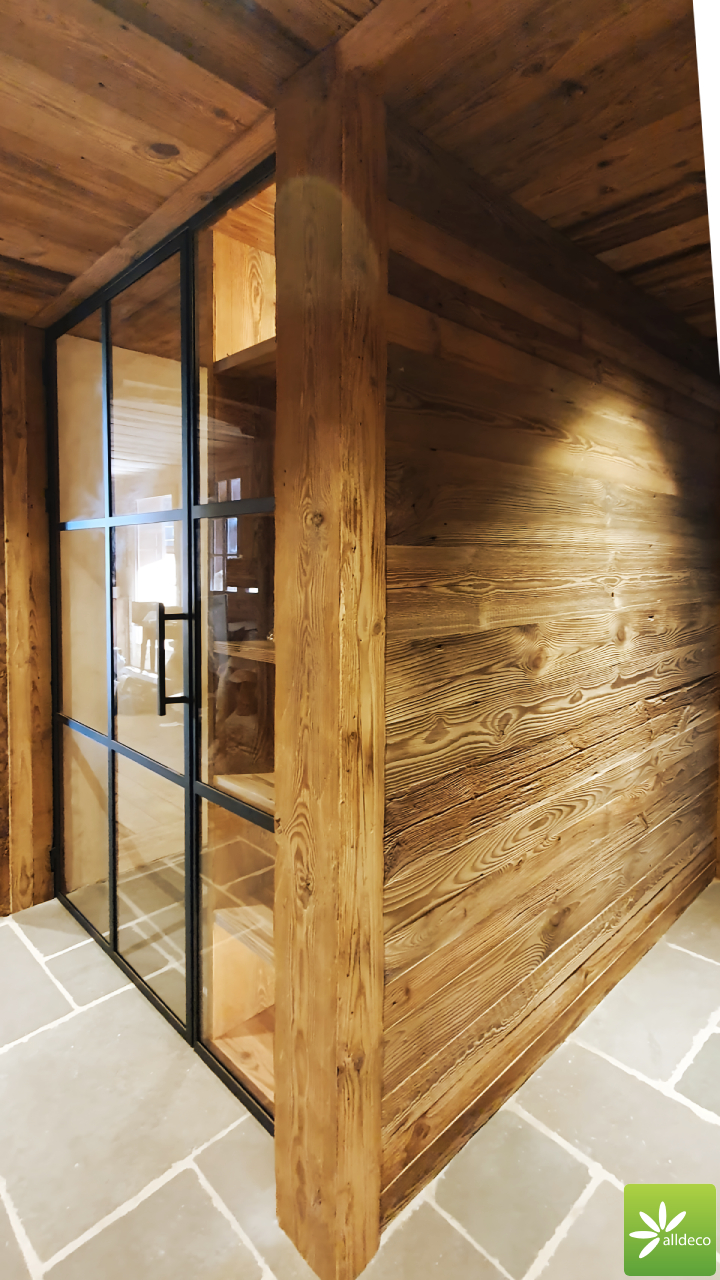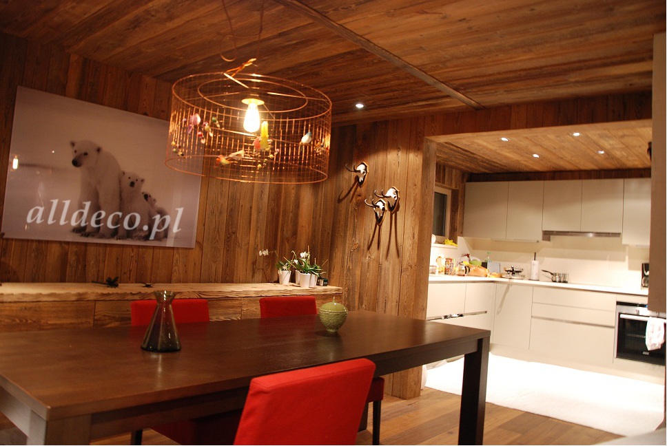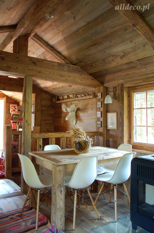 Do wnętrz budynków stosujemy starą deskę o naturalnym wybarwieniu – brązowym lub siwym, w zależności od potrzeb klienta. Deska jest montowana na listwach i łączona na pióro-wpust lub na zakładkę. Drewno, na życzenie klienta, może zostać zaimpregnowane powierzchniowo przeciwko insektom i grzybom.