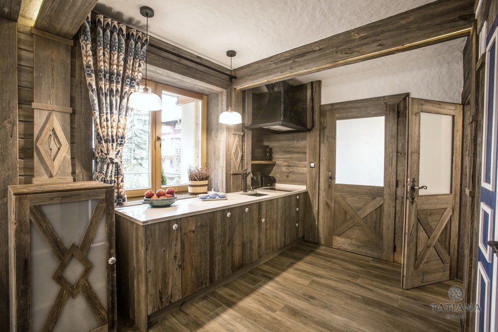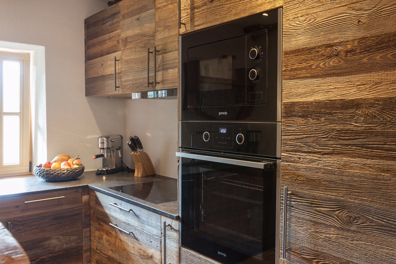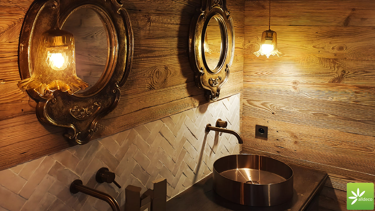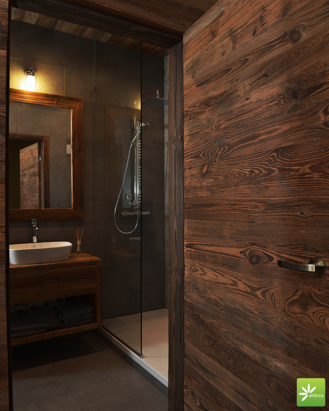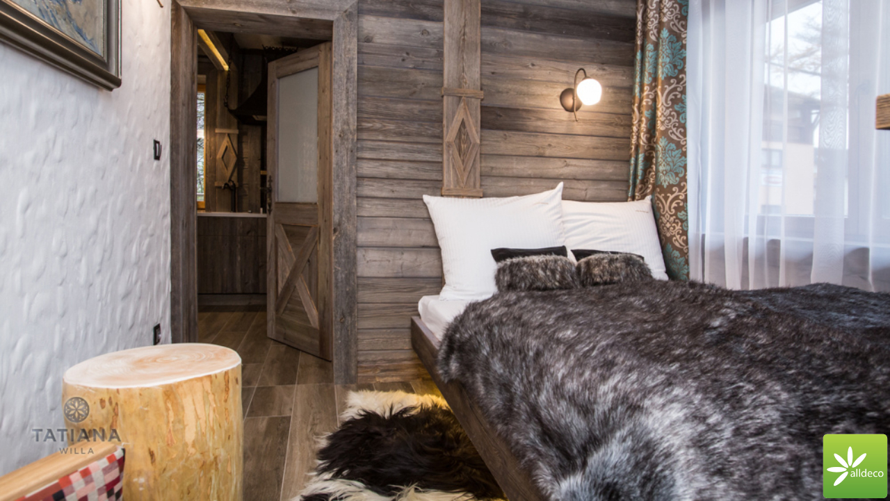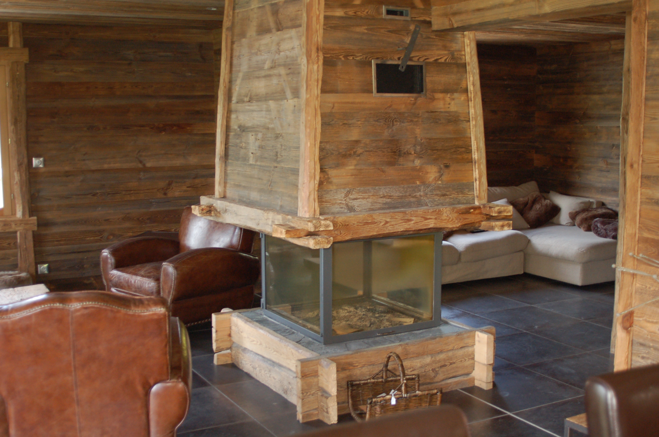 Do wnętrz budynków stosujemy starą deskę o naturalnym wybarwieniu – brązowym lub siwym, w zależności od potrzeb klienta. Deska jest montowana na listwach i łączona na pióro-wpust lub na zakładkę. Drewno, na życzenie klienta, może zostać zaimpregnowane powierzchniowo przeciwko insektom i grzybom.