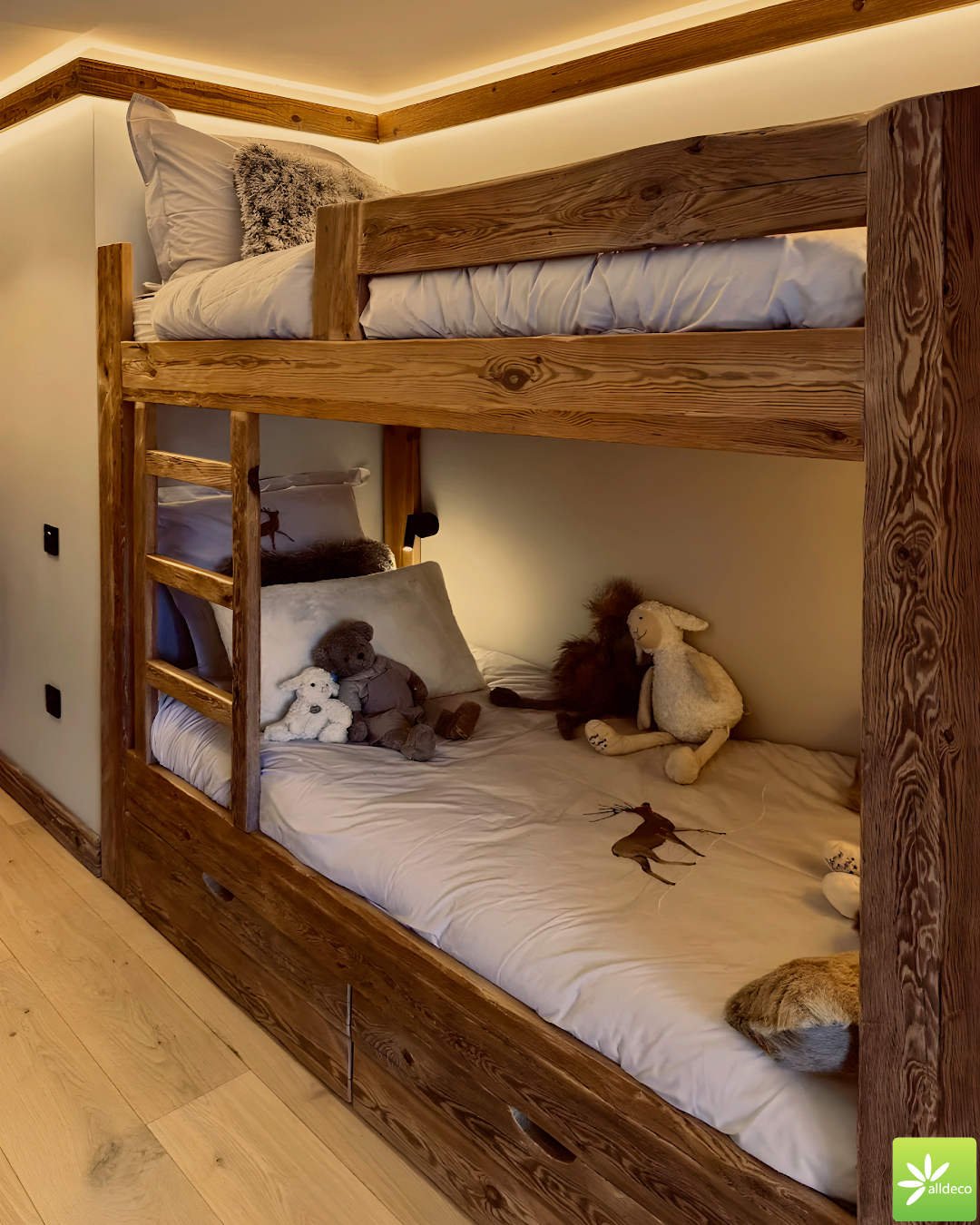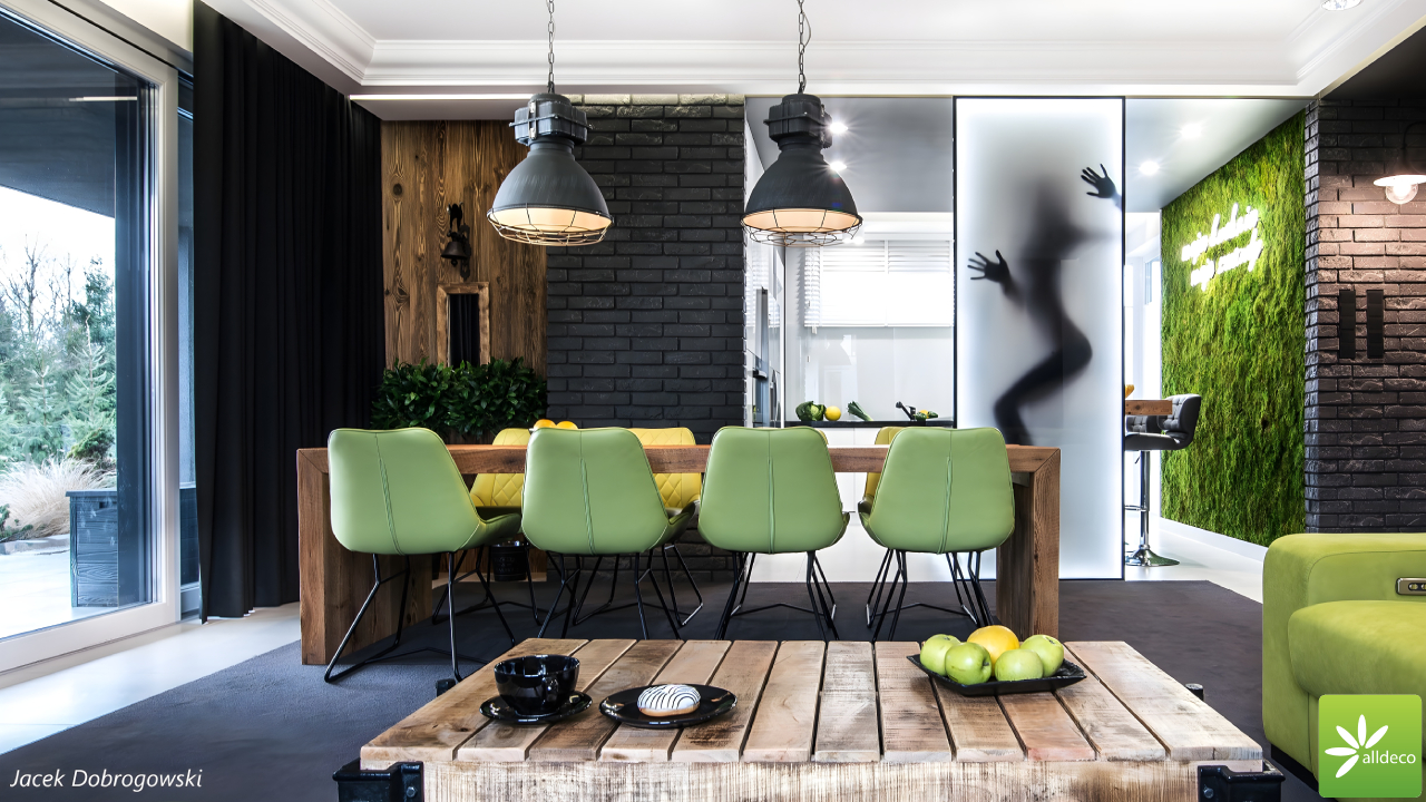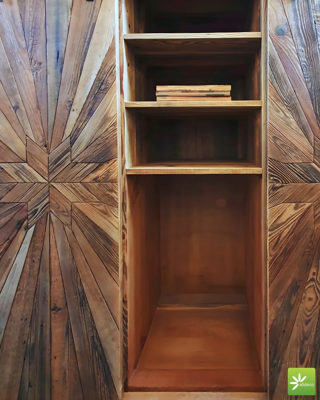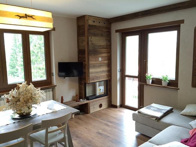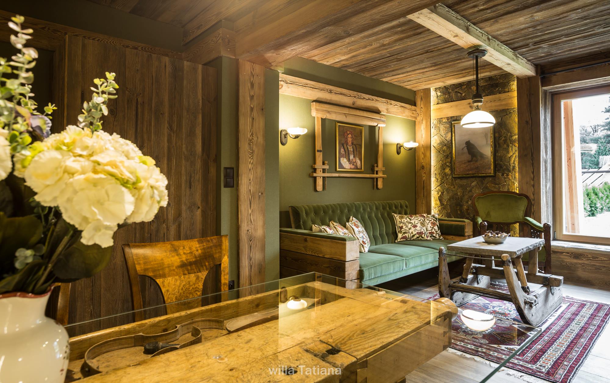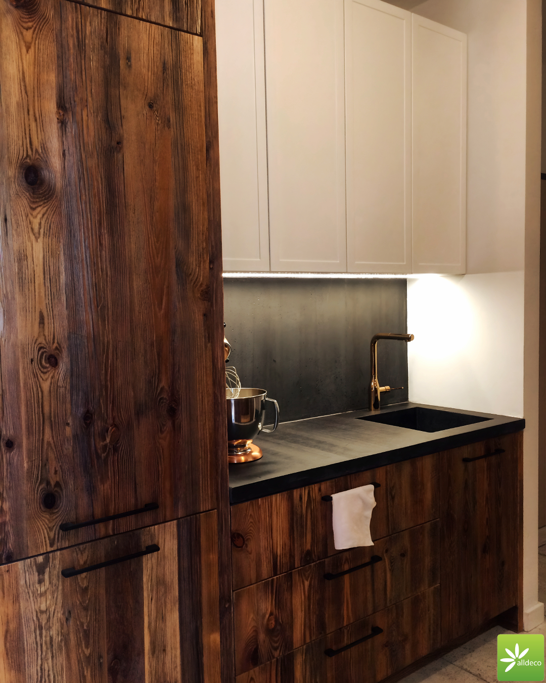 Do wnętrz budynków stosujemy starą deskę o naturalnym wybarwieniu – brązowym lub siwym, w zależności od potrzeb klienta. Deska jest montowana na listwach i łączona na pióro-wpust lub na zakładkę. Drewno, na życzenie klienta, może zostać zaimpregnowane powierzchniowo przeciwko insektom i grzybom.