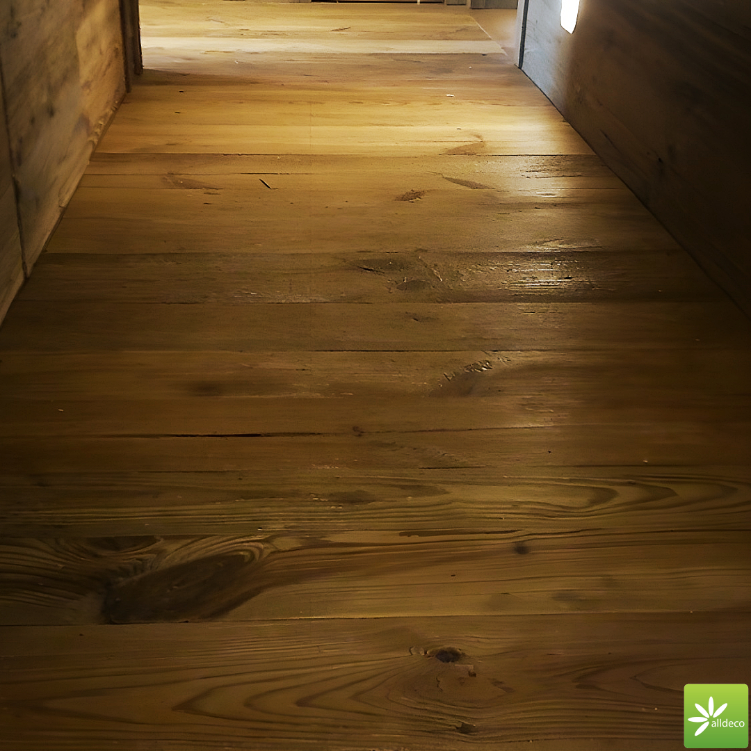 Stara deska podłogowa pozyskiwana jest z rozbiórek podłóg młynów czy spichlerzy z terenu Polski. Stara deska podłogowa zawdzięcza swój niepowtarzalny kolor oraz fakturę głównie upływowi czasu jak i użytkowaniu człowieka. Ze względu na fakt, ze nie była wystawiona na działania czynników atmosferycznych ma dość gładką fakturę, co pozwala na jej ponowne wykorzystanie na pokrycie podłóg czy też w meblarstwie. Ten unikatowy i szlachetny materiał, wypełni naturalny, nadaje wnętrzom niepowtarzalną atmosferę, dodając im ciepła, a przede wszystkim oryginalności.